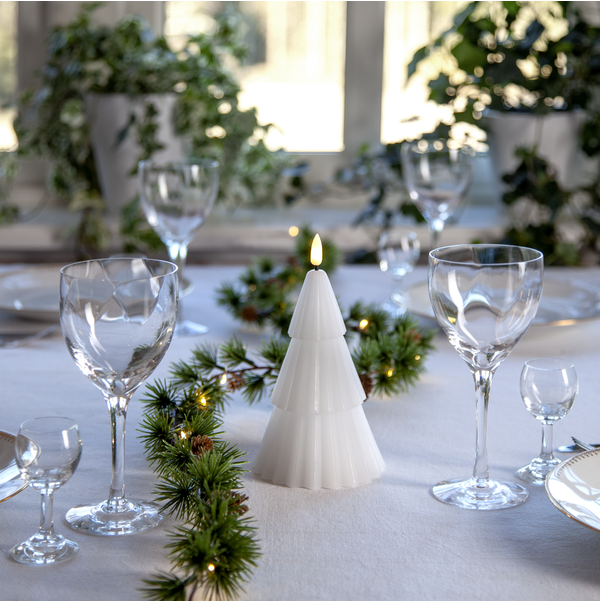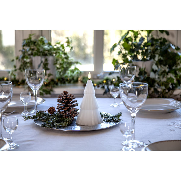 Belysning Jul LED Bloklys Flamme Gran Hvit 18 cm