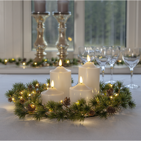 Flamme Top lys i vår familie Flamme, med naturtro flamme som lyser opp med varmt hvitt skinn. Lyset har innebygd timer. Høyde inkludert flamme er 12 cm. Unngå å plassere lysene i direkte sollys da de kan smelte og misfarges av varmen.
