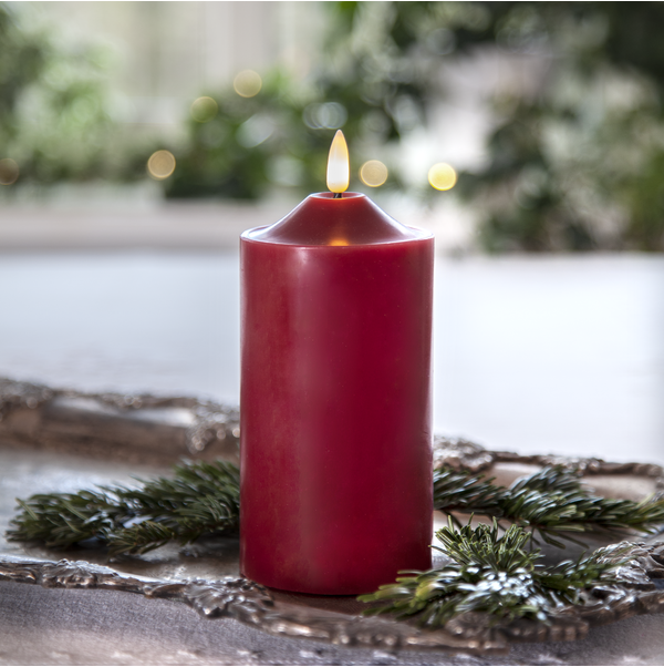Flamme Top er et vokslys i mørkerød farge. Lysets størrelse er ca. 7,5 cm i diameter og høyden inkludert flamme er ca. 17 cm. Dette batterilyset blir en vakker dekorasjon, både alene og i gruppe sammen med de andre lysene fra vår Flamme-serie. Det har timerfunksjon, og når bryteren står på timermodus, lyser lyset i ca. 30 dager med en vakker realistisk flamme i varm hvit. Det drives av 2 AA-batterier, disse er ikke inkludert. Unngå å plassere lysene i direkte sollys da de kan smelte og misfarges av varmen.