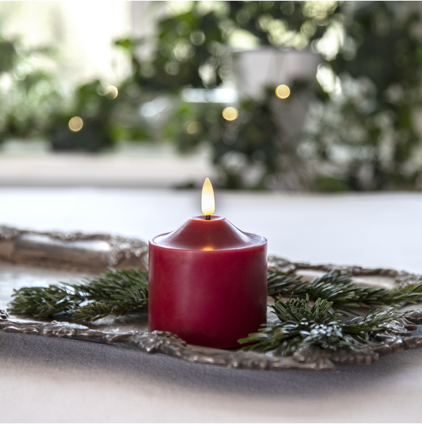 Stearinlys LED Blokklys Flamme Topp Rød 9,5 cm