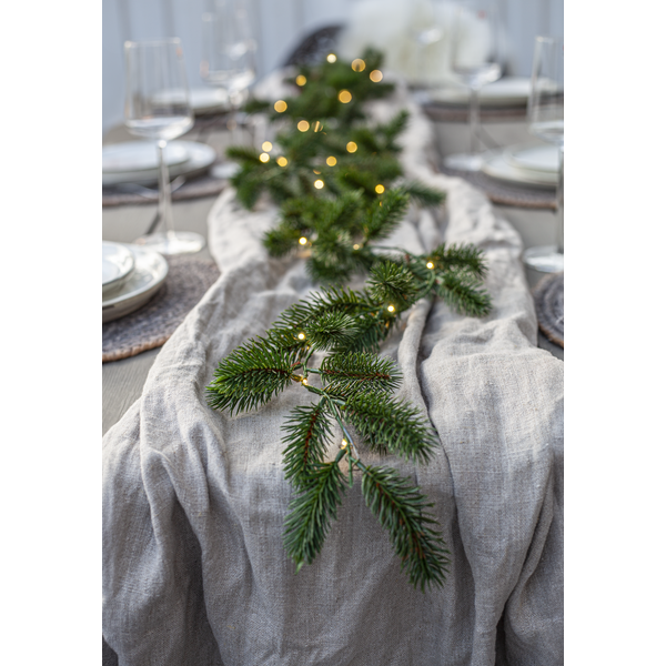 Erna er en vakker girlander med mørkegrønne kongler laget i PE-materiale som ser veldig naturtro ut. Den er 180 cm lang og lyser opp med 30 varmhvite dew-drop LED. Drives av 3 AA-batterier og har innebygd timer. Batterier er ikke inkludert.
