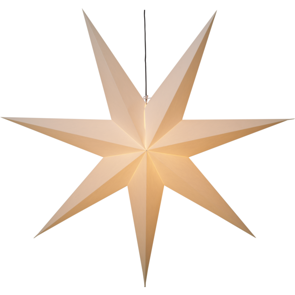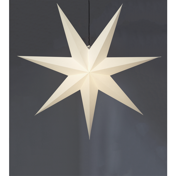 Hvit papirstjerne med svart tekstilkabel. Elegant stjerne å dekorere med i vinduet. Stjernen har plass til en lyskilde. Høyden er 140 cm.