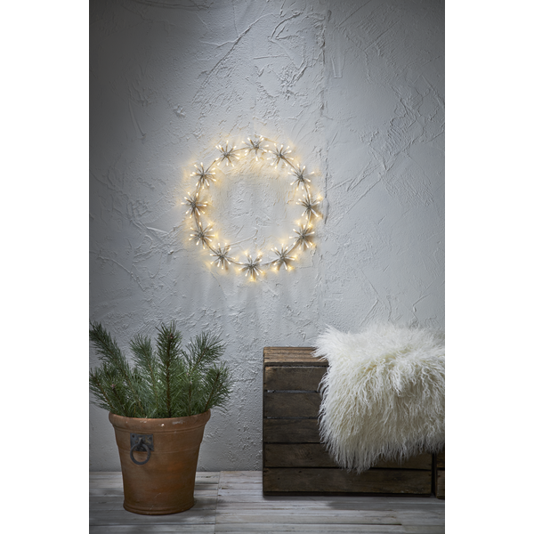 Hengende utendørsdekorasjon med herlig varm hvitt lys, skaper en fin stemning i hagen. Størrelse 50 cm med 120 lyskilder og IP44-transformator for utendørs bruk.