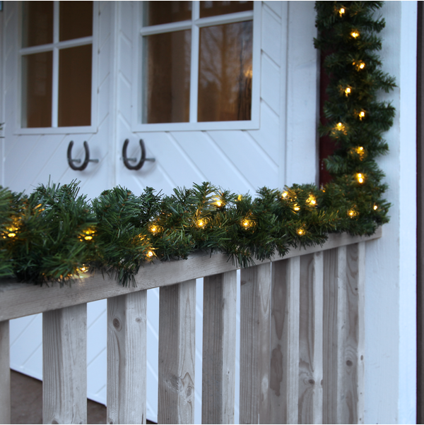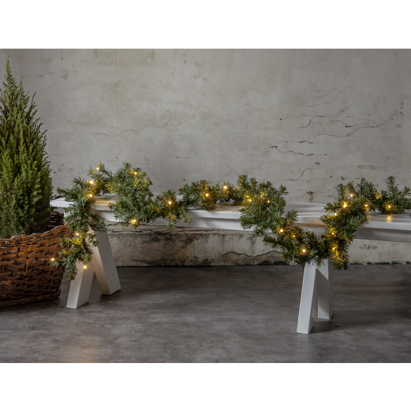 Grønn girlander med 30 LED-lys. En dekorativ girlander som gir et varmt hvitt lys. Bruksområdet er innendørs eller utendørs.