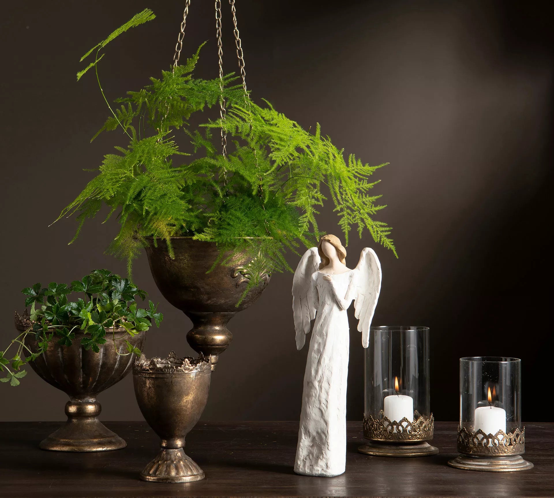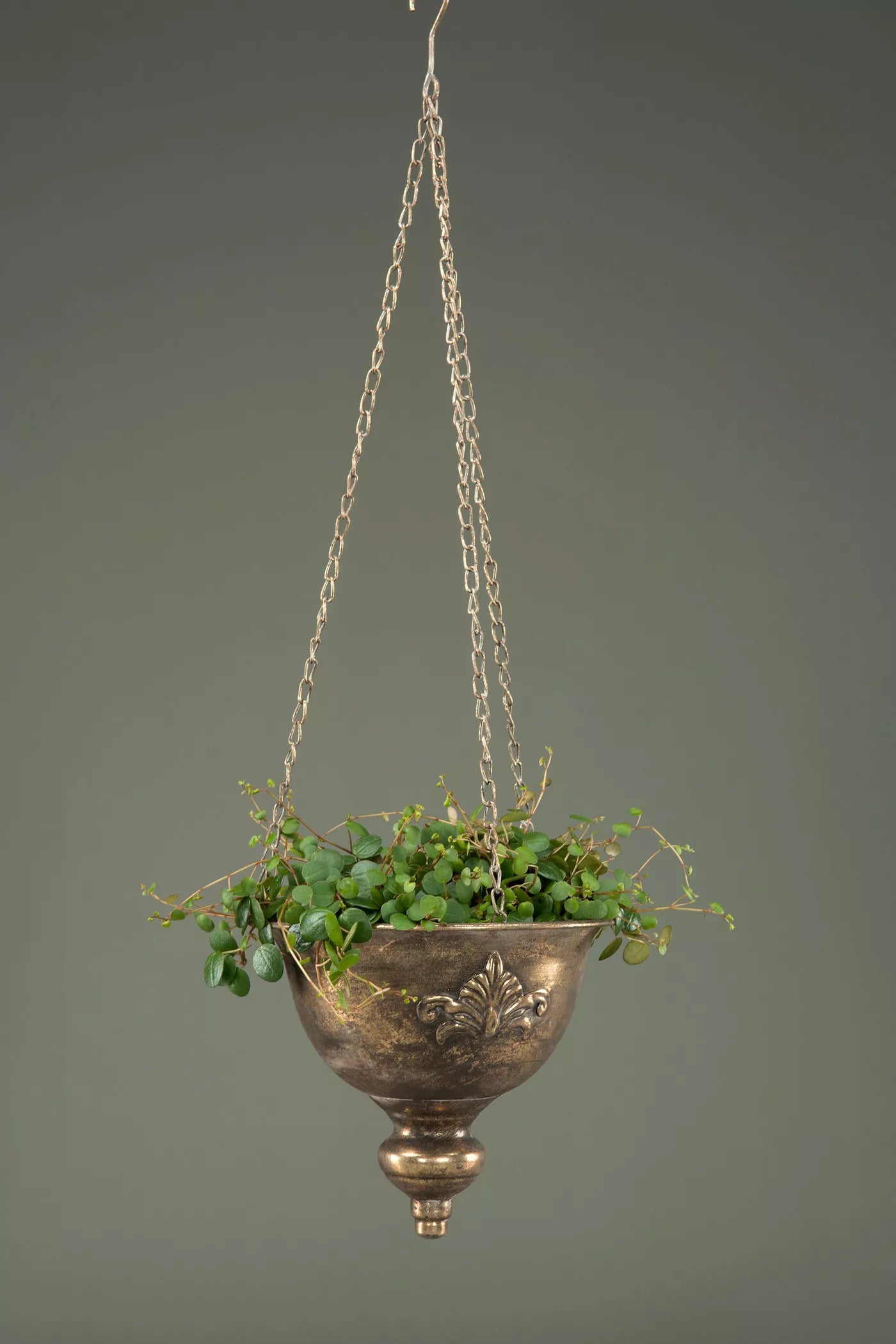 A Lot Decoration - Ampel Baron - Hengende potte - Gyldenbrun er en stilig og trendy løsning for å dyrke planter hjemme. Hengegryten er laget av slitesterkt metall med en glitrende gyllenbrun finish som gir et eksklusivt inntrykk. Gryten henger fra en elegant metallkjede med en matchende krok for å feste den til taket eller veggen. Potten har en romslig størrelse som rommer flere planter og gir dem god plass til å vokse og blomstre. Gryten er perfekt for å skape en grønn oase i stuen, soverommet, kjøkkenet eller gangen. Den kan også brukes utendørs på balkong eller terrasse, men bør tas med inne ved frost. A Lot Decoration - Ampel Baron - Hengende gryte - Gyldenbrun er et sjarmerende og funksjonelt tilbehør som gir liv og farge til hjemmet ditt.