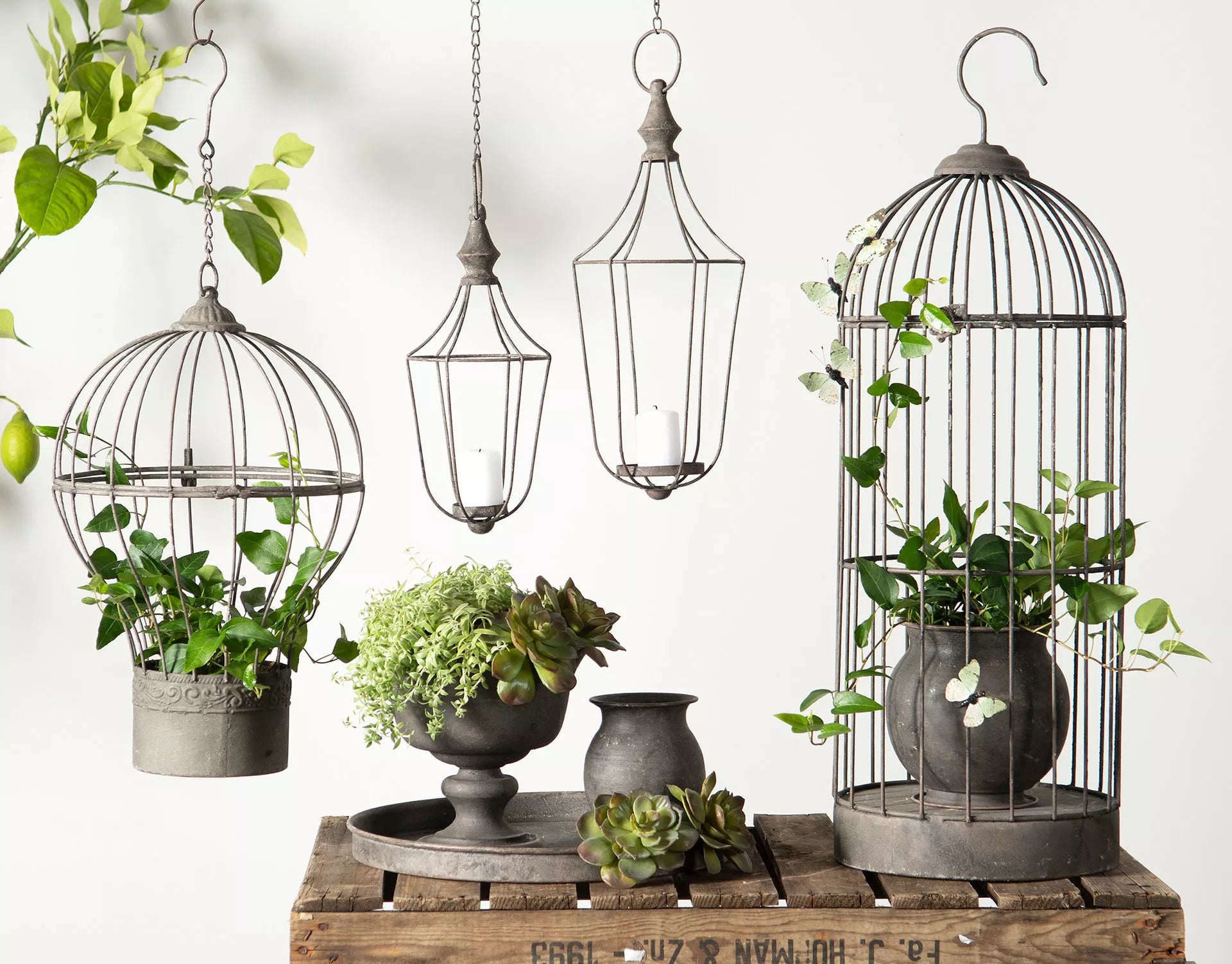 Stort og nydelig hengende bur som en luftballong med vakker kant.
