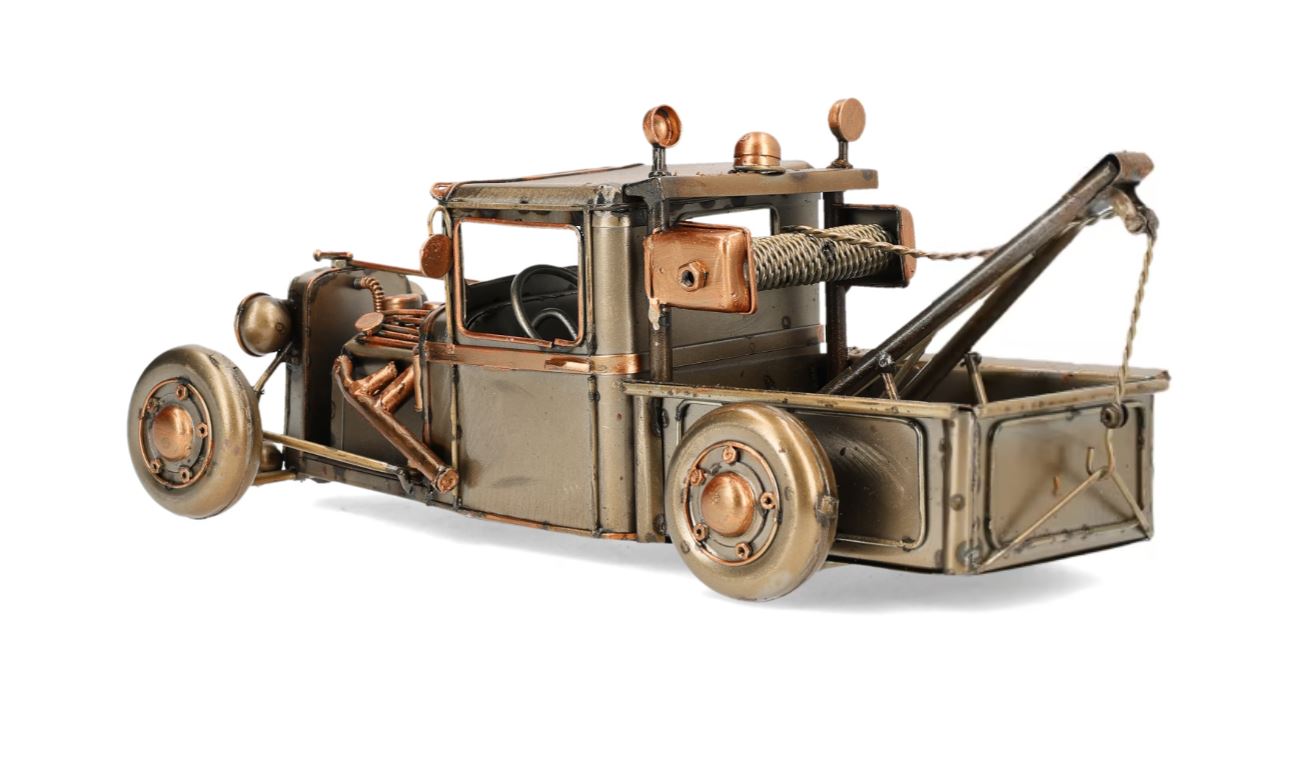 Bilentusiaster vil elske å få plassere denne bergingsbilen på hyllen sin. Laget av metall.