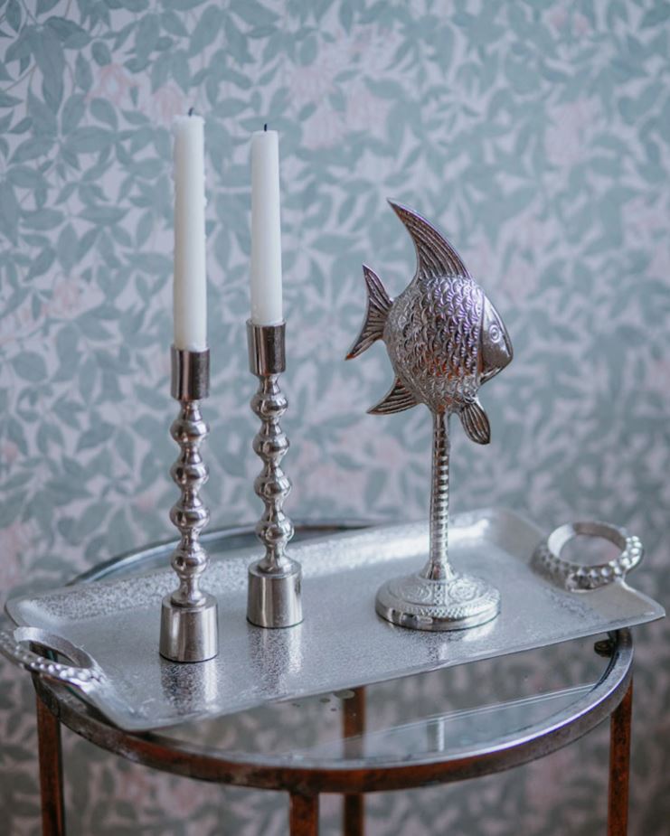 Dekorativ fisk i metall. En fin detalj å ha på bordet, vinduet eller på benken.