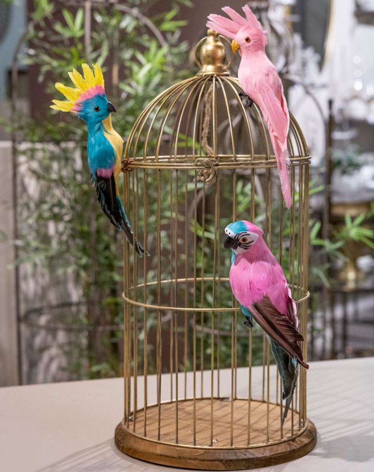 Fargerik kakadue laget av ekte fjær og isopor. Perfekt når du vil ha en eksotisk touch i hjemmet ditt.