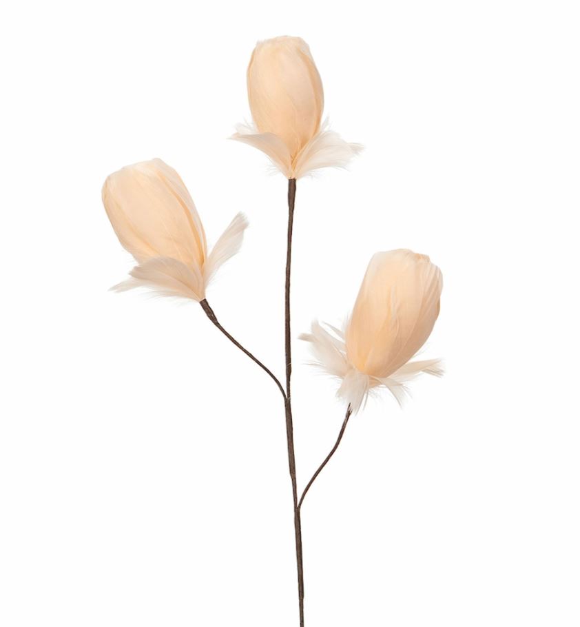 Denne kvisten med blomsterknopper laget av fjær blir en fin detalj i et blomsteroppsett eller en vase. Finnes i flere farger.