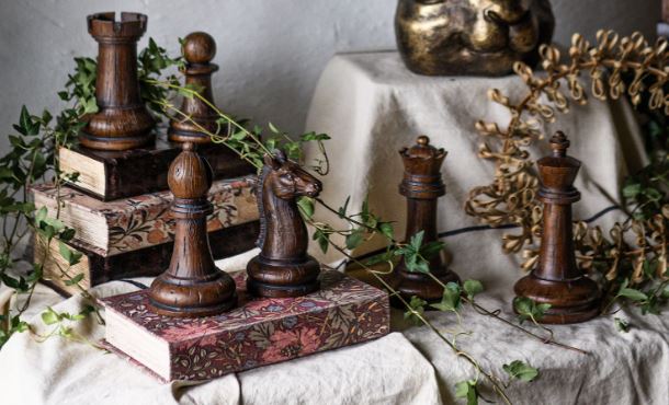 Dekorative sjakkbrikker som gjør en morsom tillegg til interiøret. Kommer som en 6-pakning. Høyde: 21 cm