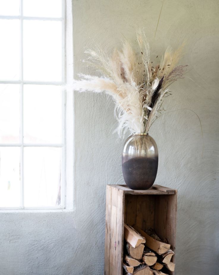 Vår vase er en vakker vase i nyanseskiftende glass som sammen med en bukett blomster blir et dekorativt innslag i hjemmet.