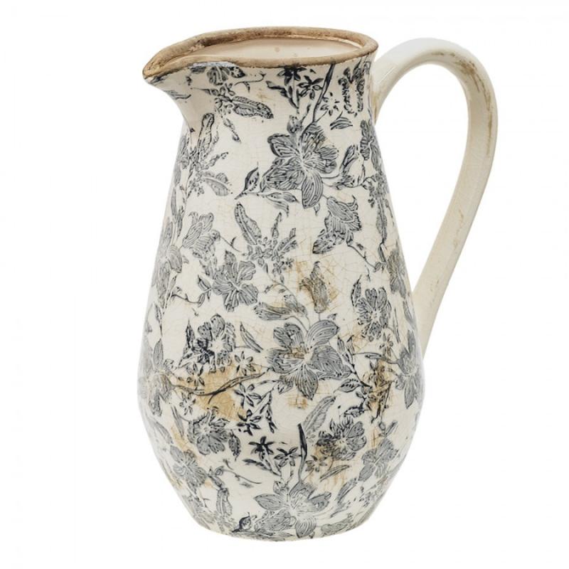 Dekorativ Kanne 24x17x30 cm Gråbeige Keramiske blomster