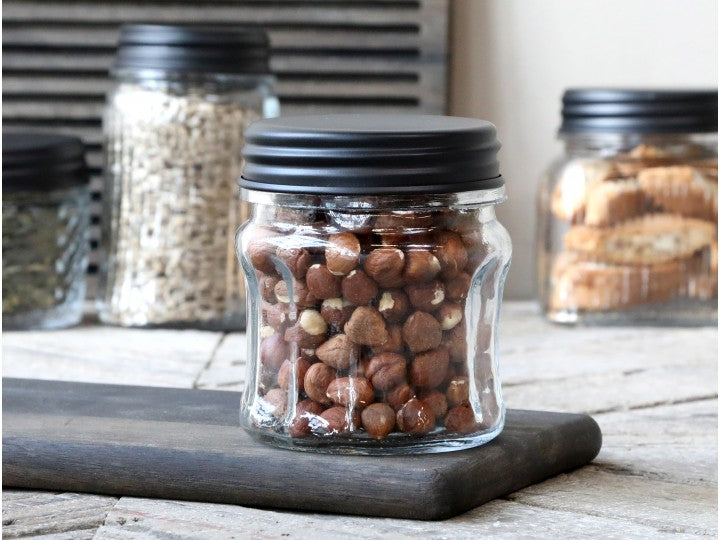 Dekorativ Flaske Krukke Oppbevaringsglass spor og svart lokk H11 / Ø9 cm