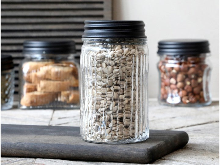 Dekorativ Flaske Krukke Oppbevaringsglass spor og svart lokk H14 / Ø8 cm