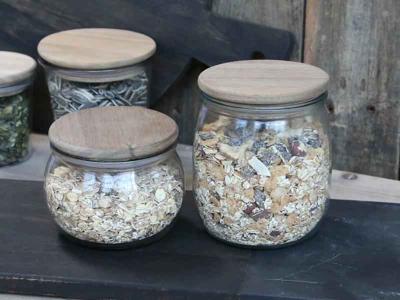 Dekorativ Flaske Krukke Oppbevaringsglass trelokk H8.6 / Ø11 cm klart
