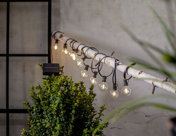 Solcellekjeden Globe Mini har 10 små kuler som er laget av transparent PC-plast. Kula er ca. 4 cm i diameter med 30 cm kabel mellom hver. Den lyser opp med filament LED i varmt hvitt lys i mørket. Solcellebelysningen passer utmerket som dekorasjon i hagen, på balkongen eller terrassen. Selve paneldelen har 200 cm kabel fra den siste kula, noe som gjør det enkelt å plassere panelet i direkte sollys, noe som er nødvendig for å få optimal lading av det medfølgende batteriet.