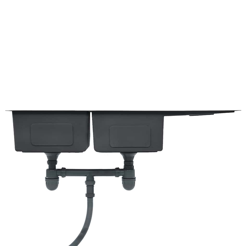 Denne doble vasken kombinerer det beste innen funksjon og design. Den er laget av høykvalitets håndlaget rustfritt stål i antikondensasjonsmaling, og er muggsikker, blyfri og korrosjonsbestandig. Den er lydisolerende takket være lydreduserende puter. Dreneringsbrettet vil være veldig nyttig ikke bare når du gjør oppvask for hånd, men også som et ekstra sted for å kutte grønnsaker. I tillegg letter kummene med et unikt X-flume-design rask flyt og forhindrer at vann blir igjen i bunnen.