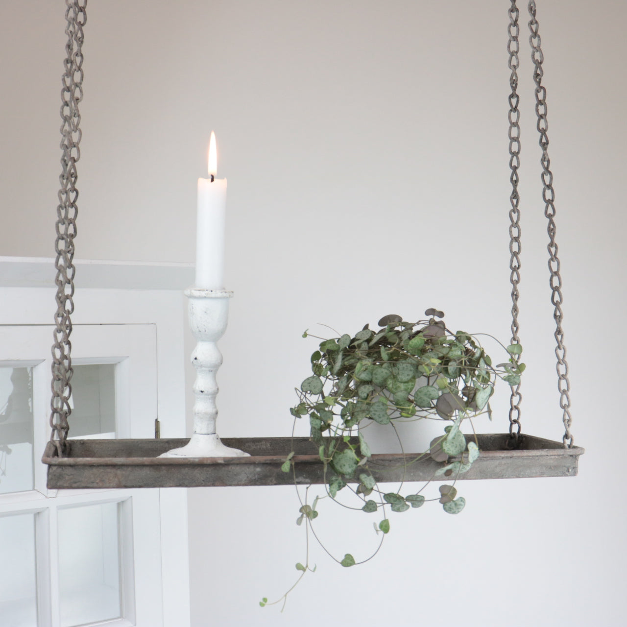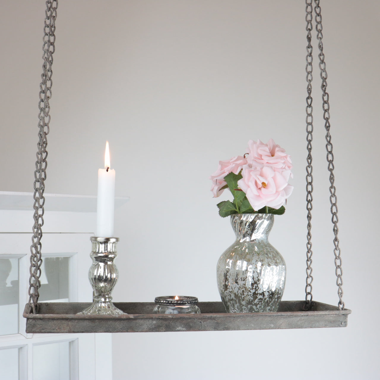 Hvis du leter etter en måte å forvandle hjemmet ditt til et koselig og sjarmerende sted, er denne hengende hyllen et perfekt valg. Den har en antikk grå farge som gir et rustikk og vintage preg, og et vakkert mønster som skaper en romantisk atmosfære. Hyllen er laget av metall. Og kan henge favorittgjenstandene dine, for eksempel stearinlys, blomster, bilder eller smykker. Du kan plassere den i stuen, soverommet, kjøkkenet eller gangen, og nyte det elegante og praktiske designet. Denne hengende hyllen er ikke bare en dekorasjon, men også et uttrykk for din personlige stil og smak. Bestill den i dag og gi hjemmet ditt et unikt preg med Hengende hylle - antikk grå.