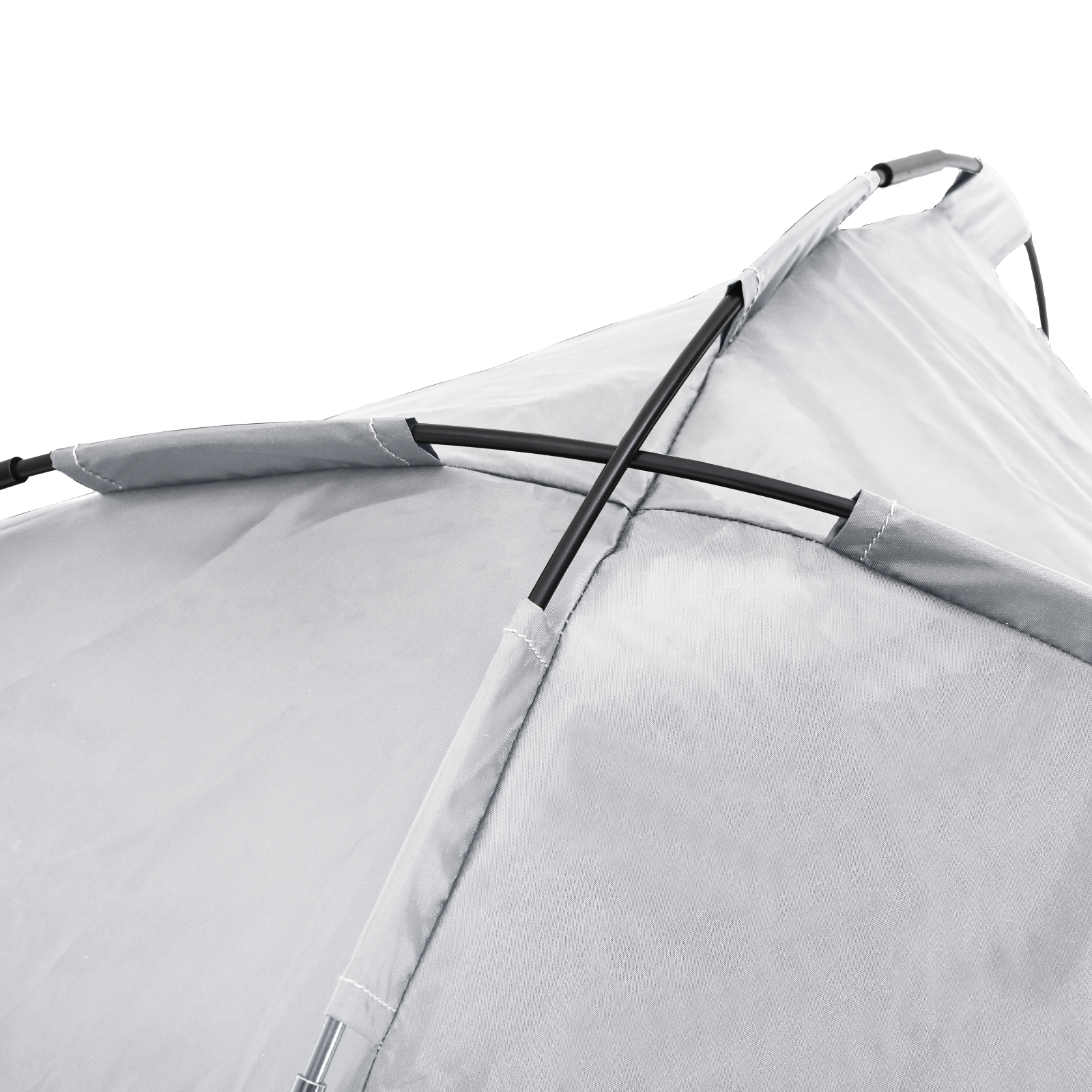 Denne hevede hundesengen er kjempesmart for mellomstore og store raser. Den gir et behagelig sted å slappe av ute, med en praktisk canopy. Det stilige sølvgrå designet ser moderne ut og gir en hevet oppsett som gir god luftstrøm, noe som er viktig for en kjølig og koselig atmosfære.