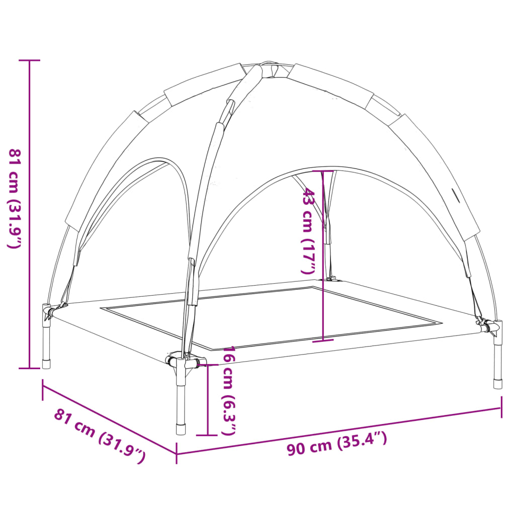 Hundeseng med kalesje antrasitt oxfordstoff og stål