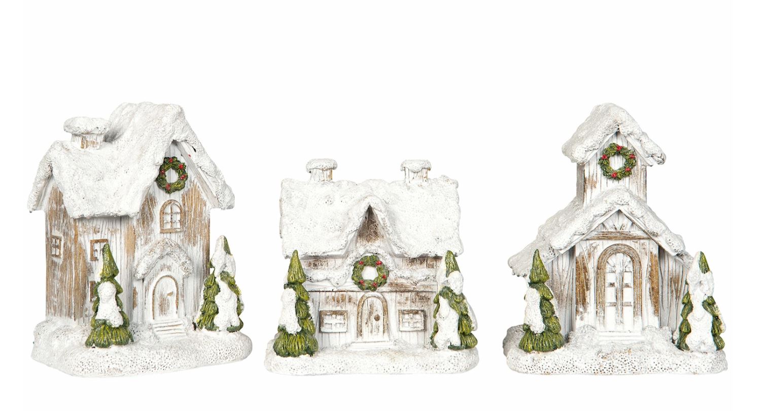 Innendørs julepynt 3-pakning Hus Snøstad Mix