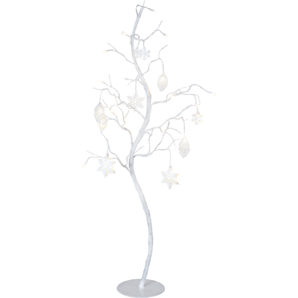 Hvitt dekorativt tre med fine metalldetaljer. Treet har 27 LED-lyskilder som gir et fantastisk varmt hvitt lys. Vakker dekor til å dekorere med innendørs.