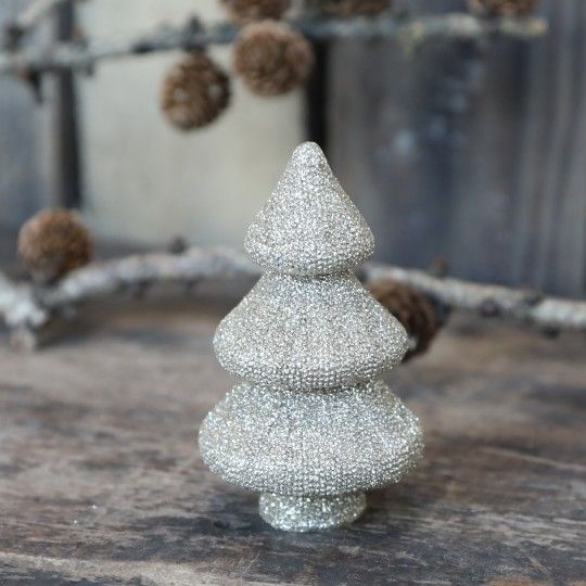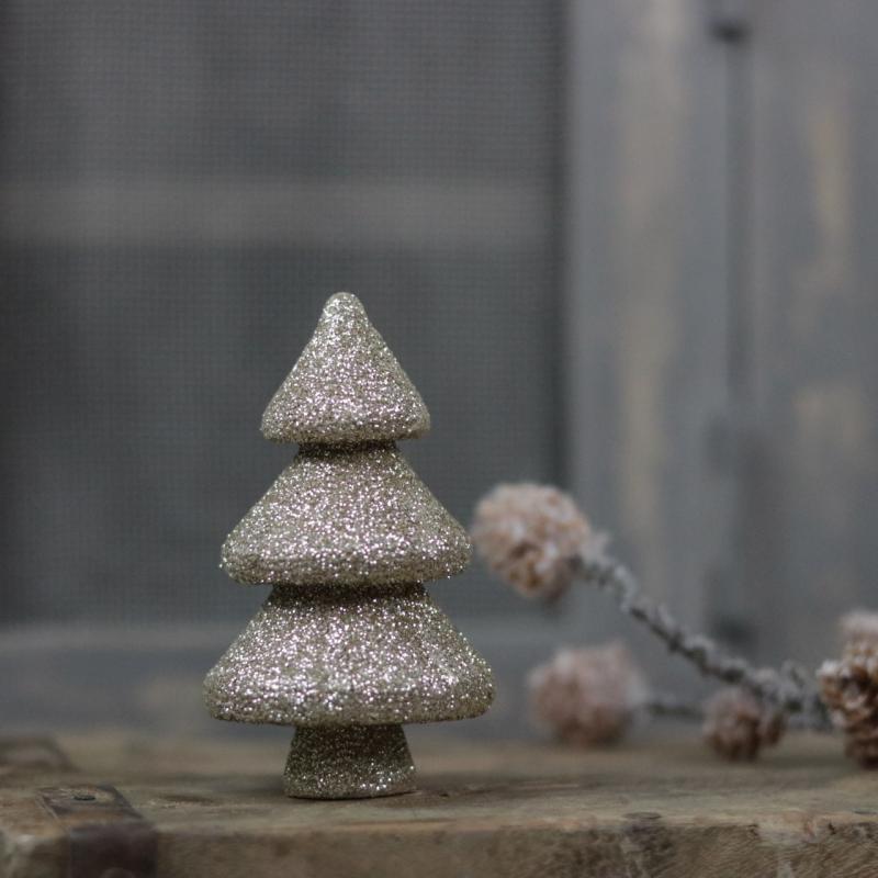 Innendørs julepynt Juletre glitter 9,5 cm champagne