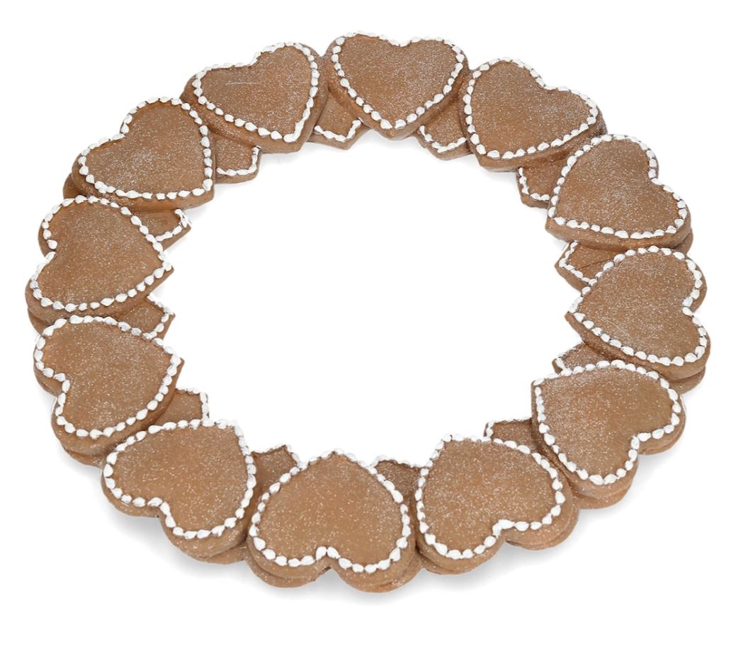 Denne kransen med pepperkakehjerter blir en morsom og dekorativ detalj til jul.