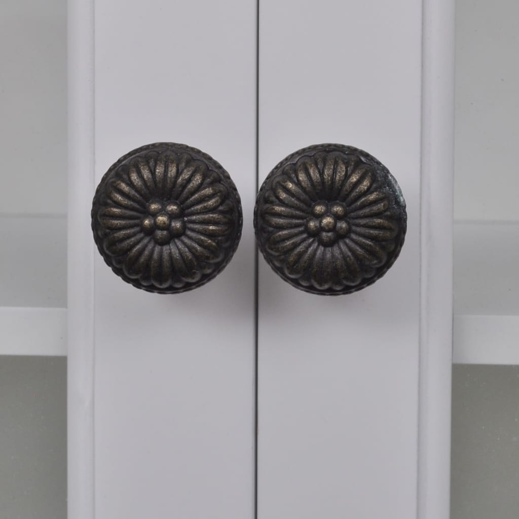 Dette elegante veggkabinettet av tre i antikk stil vil tilby ekstra lagringsplass på kjøkkenet og vil hjelpe til med å holde gjenstander organisert.