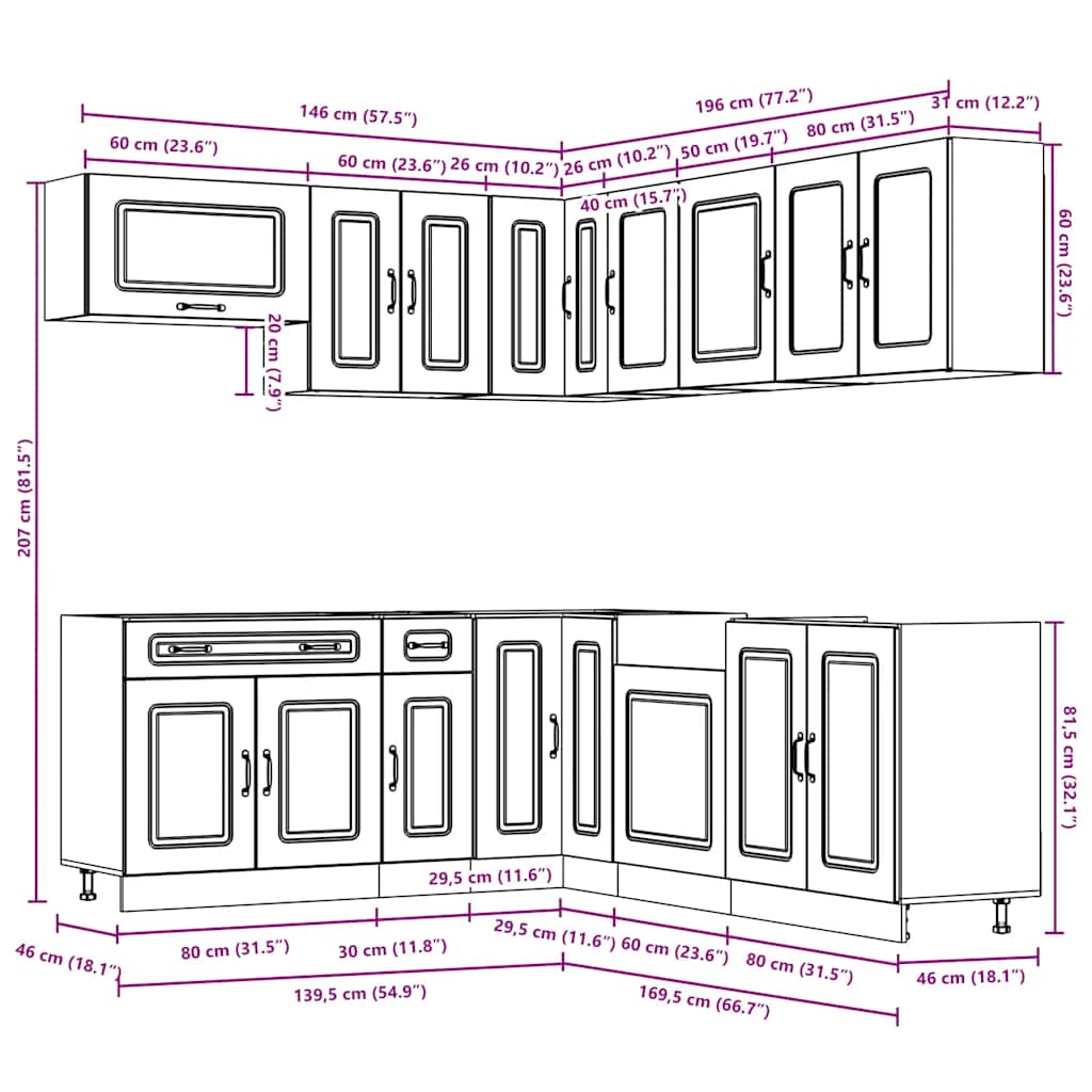 Dette 11-delers kjøkkenskapsettet, med sitt elegante design, optimaliserer kjøkkenområdet og gir rikelig med lagringsplass for dine personlige eiendeler!