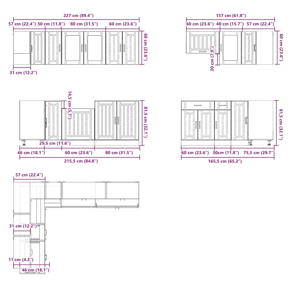 - 1 x kjøkkenvegg hjørneskap: 57 x 57 x 60 cm (B x D x H)