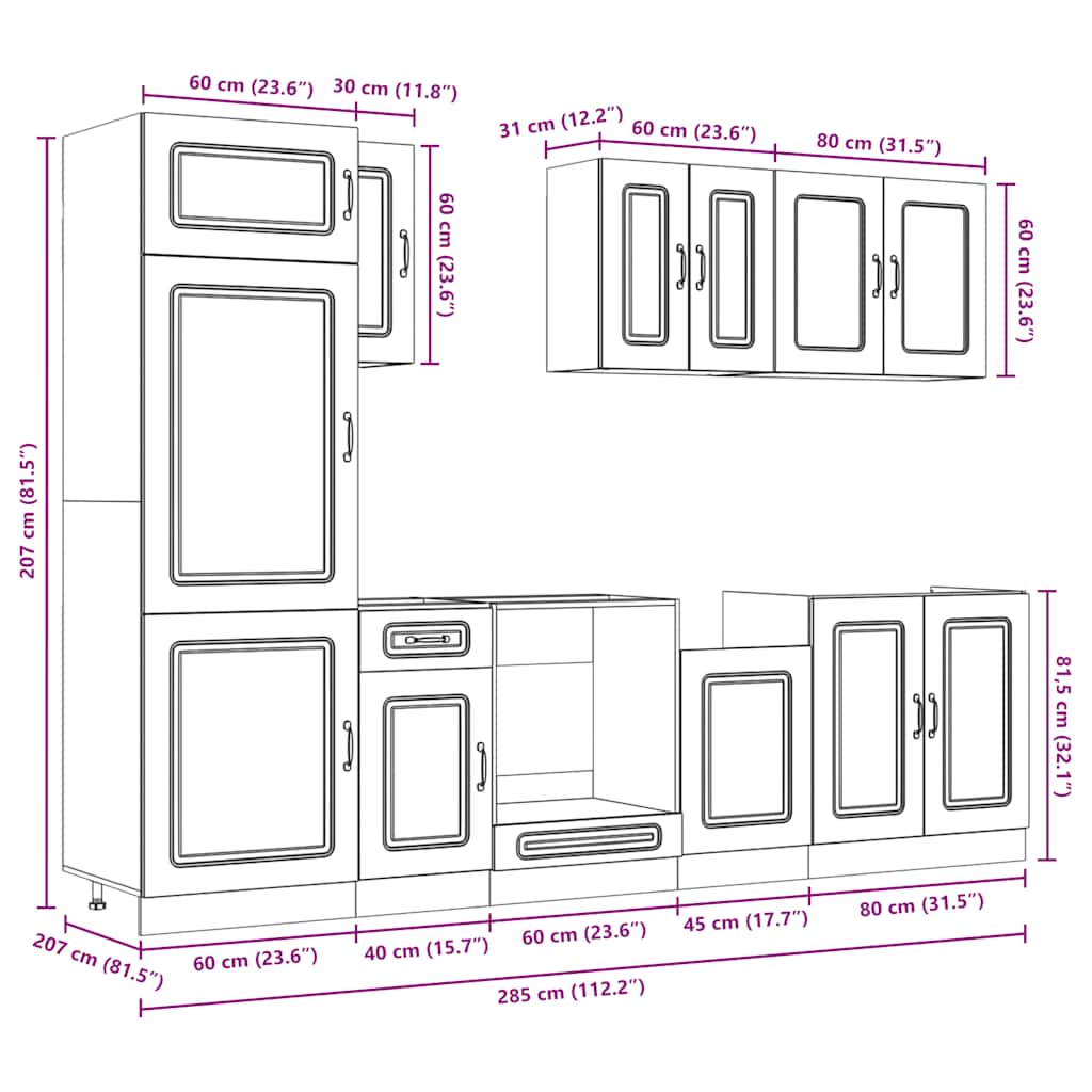 Dette 8-delers kjøkkenskapsettet, med sitt elegante design, optimaliserer kjøkkenområdet og gir rikelig med lagringsplass for dine personlige eiendeler!