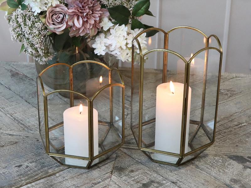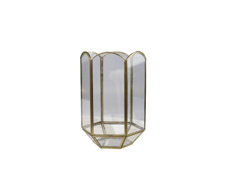 Lyslykt 6 vinklet H26,5 / Ø16 cm antikk messing 1 st
