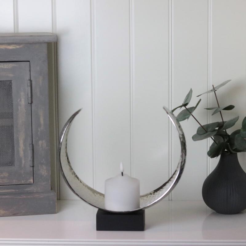 Lyslykt Metall Måne Dekorasjon Sølvl 25,5x10x26 cm