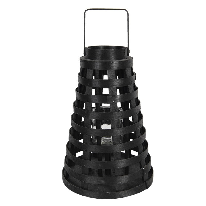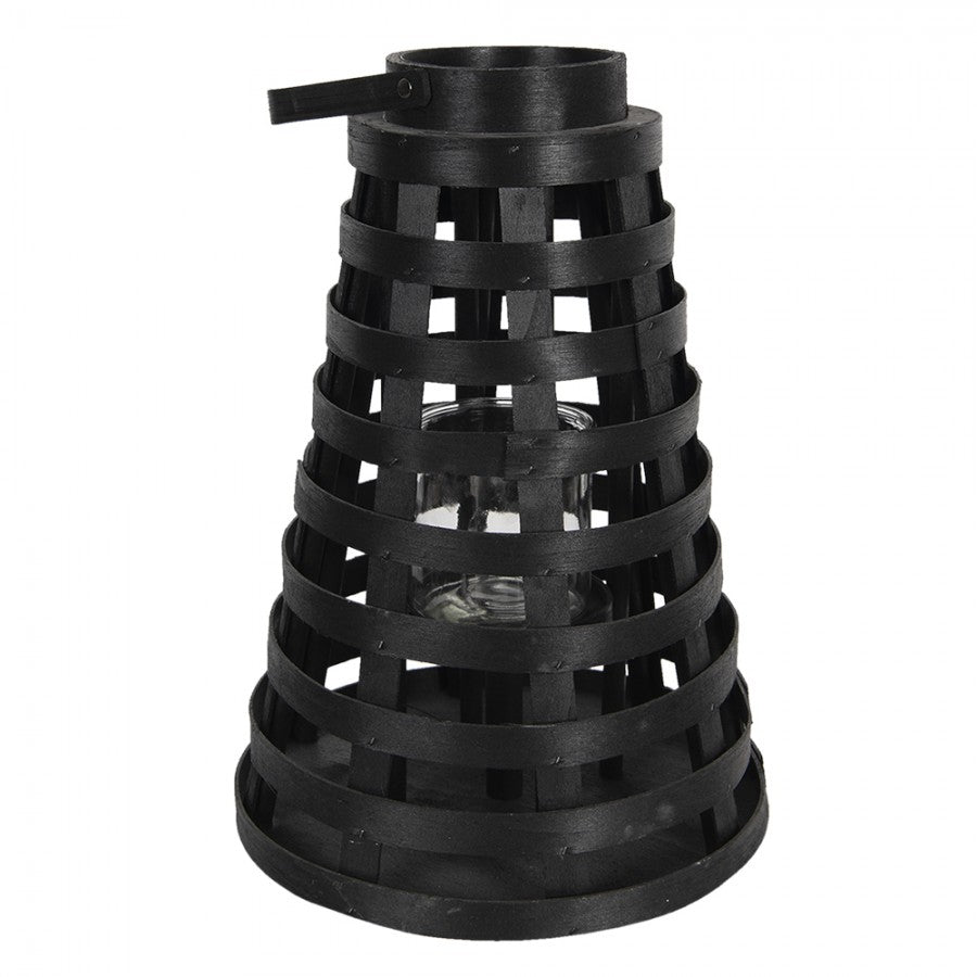Lyslykt Ø 28x40 Cm Sort Tre Glass Telys