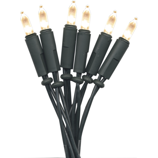 Enkeltledd P-LED lyssløyfe med 35 varmhvite lyskilder for innendørs bruk. Flott å pynte med hjemme på bord, trapper og i juletreet. Lengden er 510 cm og kabelen er grønn.