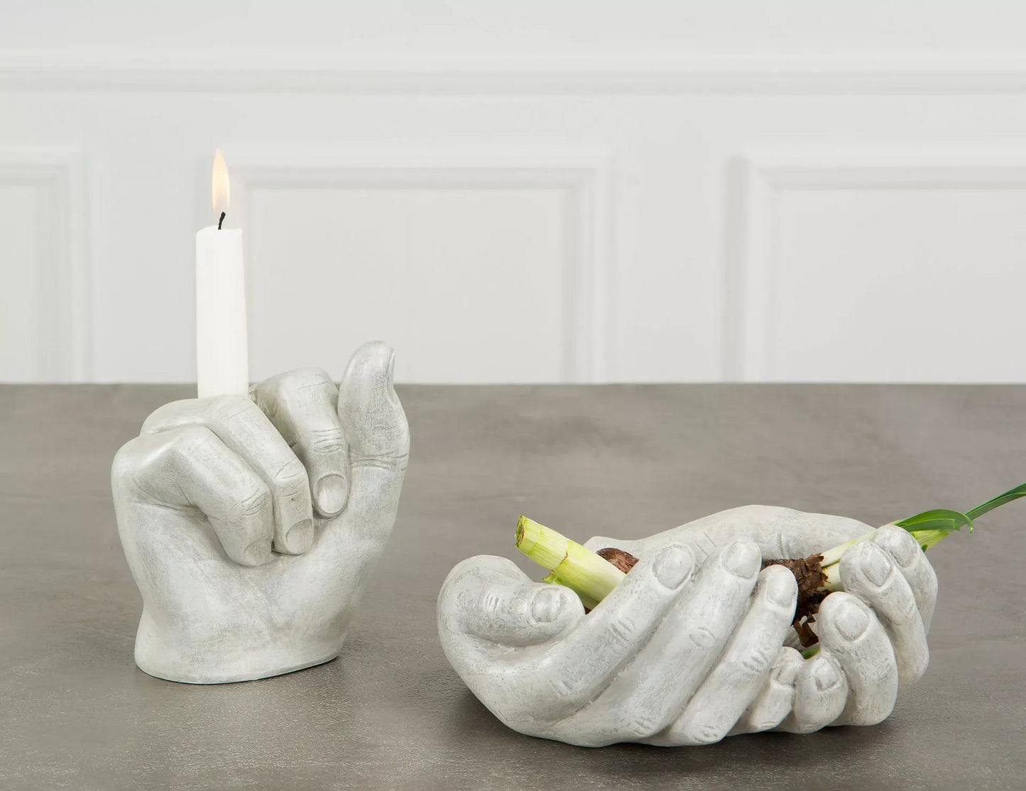 Lysestake Finger Grå Poly 12x10x14,5cm