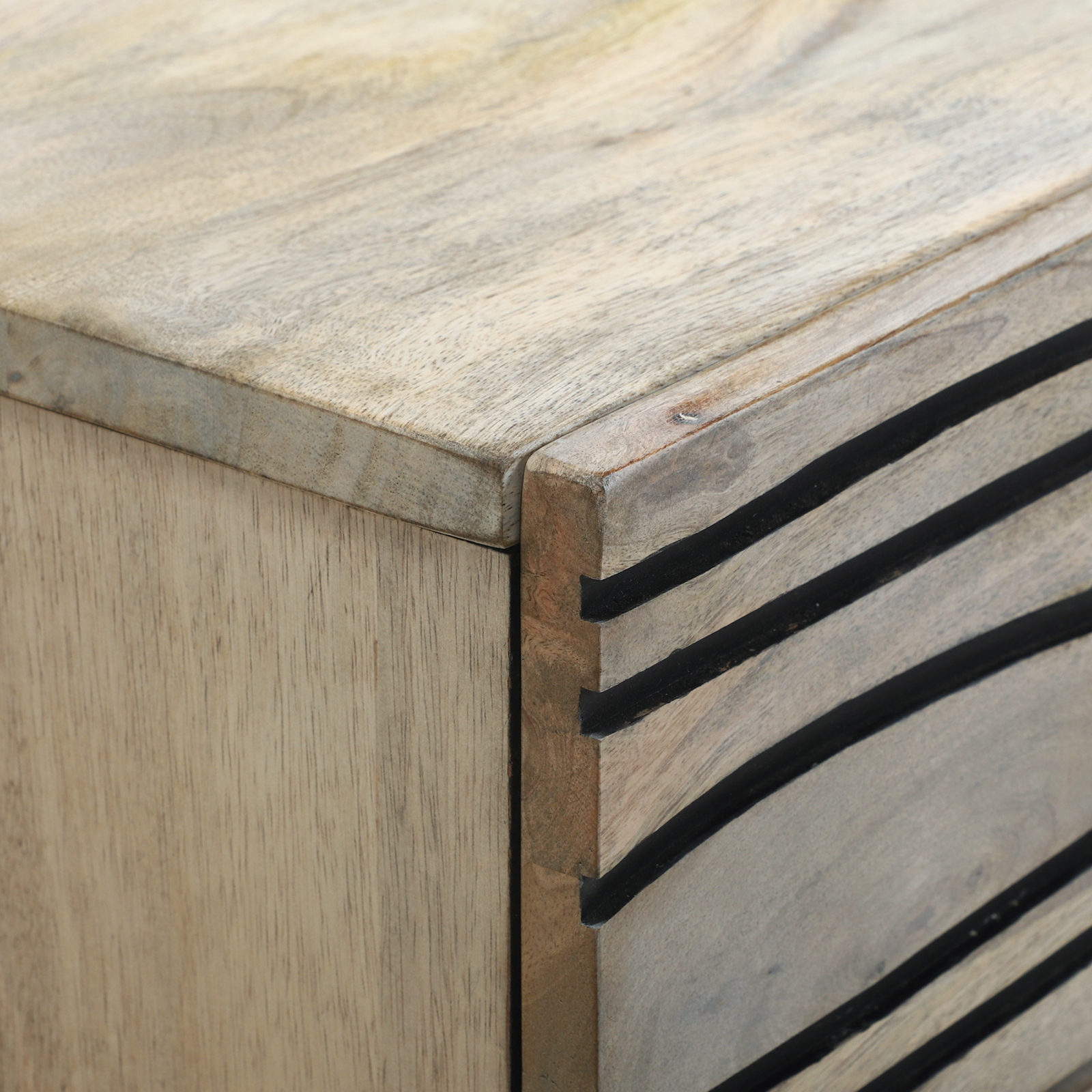 Dette nattbordet er laget for moderne hjem og gir en naturlig og varm stemning med sitt solide mangotre. Det er akkurat det rette for å ha ved senga, perfekt for lamper, vekkerklokker eller dine personlige ting. Det passer til enhver soveromsdekor og gjør rommet mer koselig.