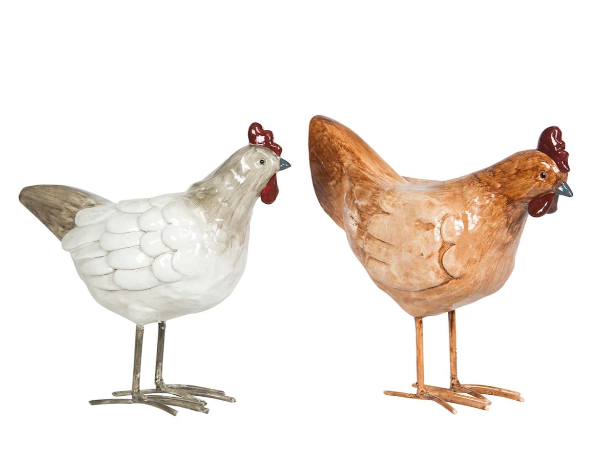 Gjør hjemmet klart for påsken med et sett med en høne og en hane med glans. Laget av poly.