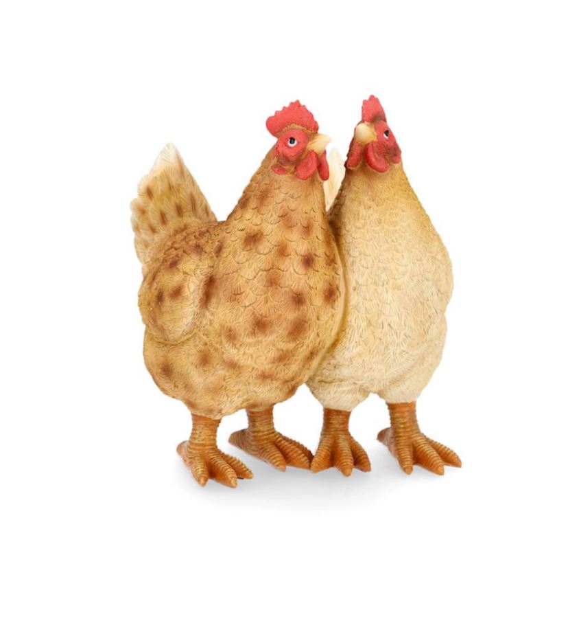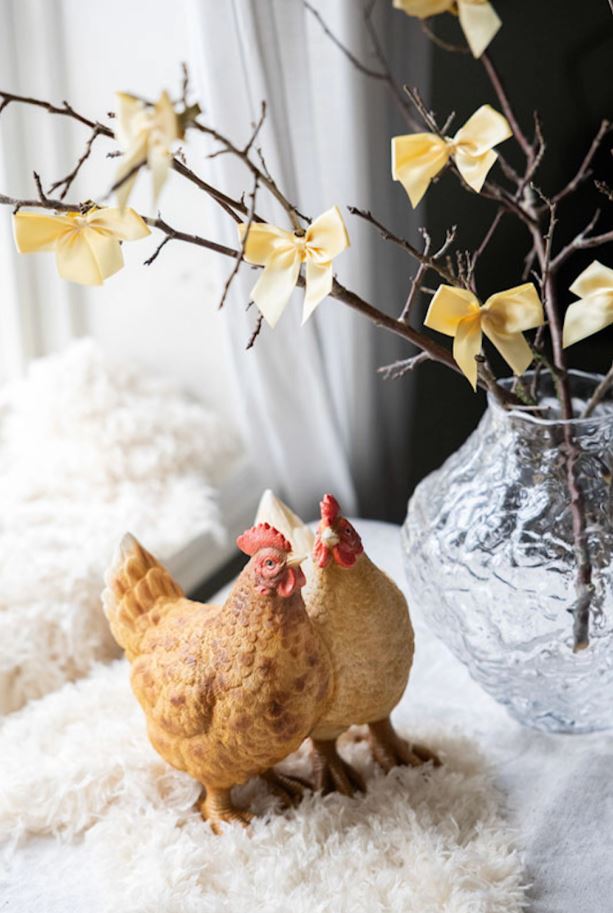Denne dekorasjonen med to høner blir et lekent innslag i innredningen. Perfekt til påske. Laget i poly.
