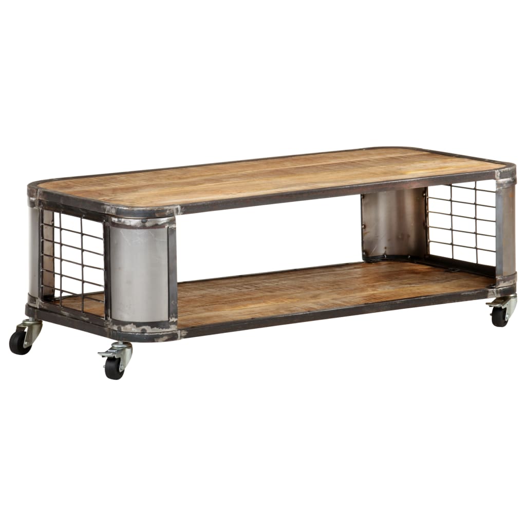 Dette fantastiske salongbordet er laget av heltre mango, et løvtre med tett kornstruktur. Kombinert med stål, er det sterkt nok til å motstå tidens tann. Bordet er utstyrt med 4 hjul som gjør det enkelt og fleksibelt å flytte.