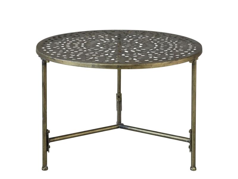 Sidebord mønster H42 / Ø60,5 cm antikk messing