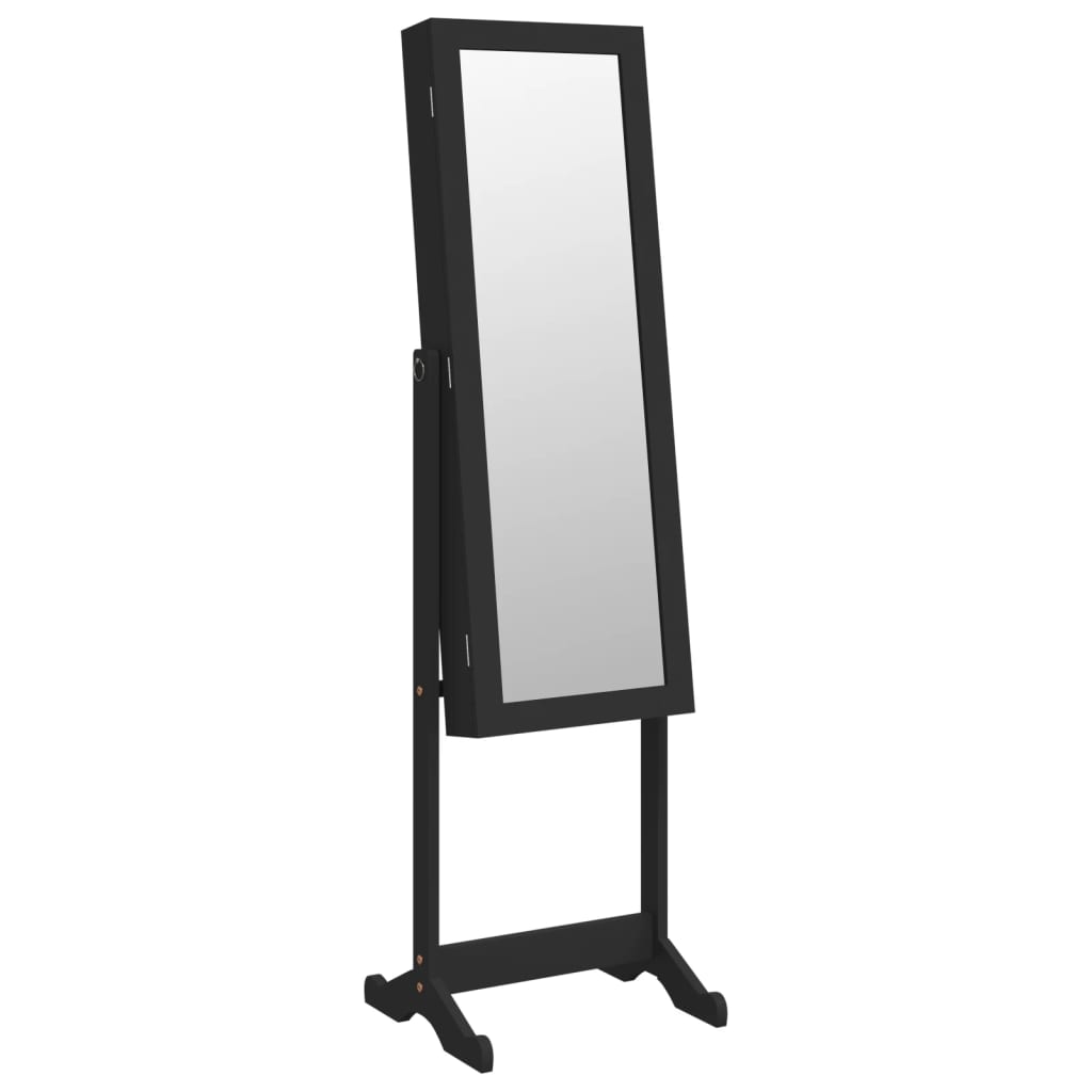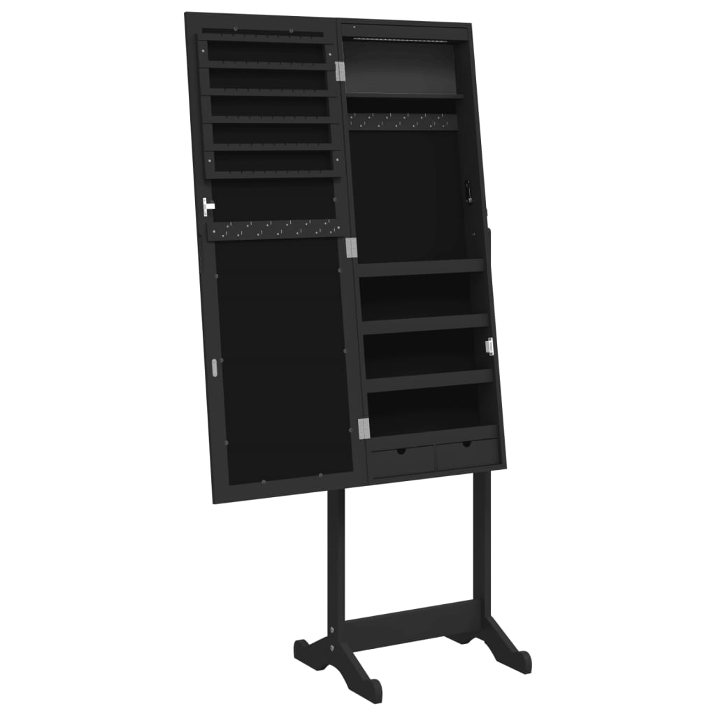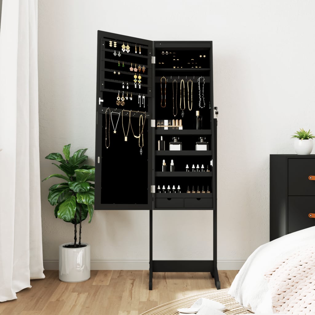Smykkeskap med speil og LED-lys frittstående svart