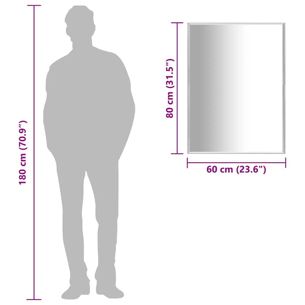 Dette speilet er laget av glassmateriale med en PVC-ramme som sikrer stabilitet og holdbarhet. I tillegg gir den rette kanten dette speilet et unikt utseende, som lett gir en minimalistisk stil til soverommet, garderoben eller badet.