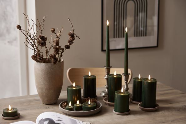 Stearinlys LED Telys 2-pakning Flamme Flow 7x5,5cm Grønn
