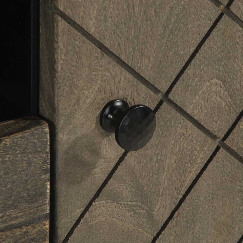 - Materiale: Massivt mangotre med sanblåsingsutseende i grå finish, konstruert tre, metall