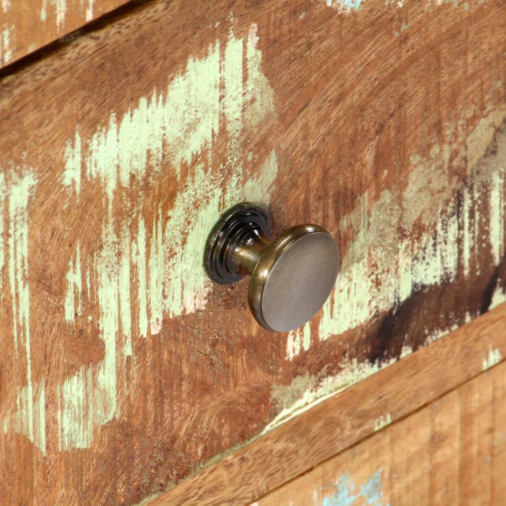 TV-benken er laget av gjenvunnet heltre som er hentet fra bjelker, gulv og støttebjelker fra gamle revne bygninger. Den består av forskjellige typer tre som furu, teak, bøk, eik, seder, mango, akasie osv. Dette betyr at treverket beholder egenskapene til disse forskjellige treartene. Gjenvunnet tre er allerede eldet, forvitret og tørket, og krympes eller bøyes derfor ikke. Det utsøkte håndverket og den delikate kornstrukturen gjør hvert møbel særegent og litt forskjellig fra det neste. Dette TV-stativet har 2 skuffer og 1 rom, og gir god plass til lagring av multimedieapparater, bøker og diverse andre gjenstander. HiFi-benken er allerede montert; ingen montering er nødvendig.