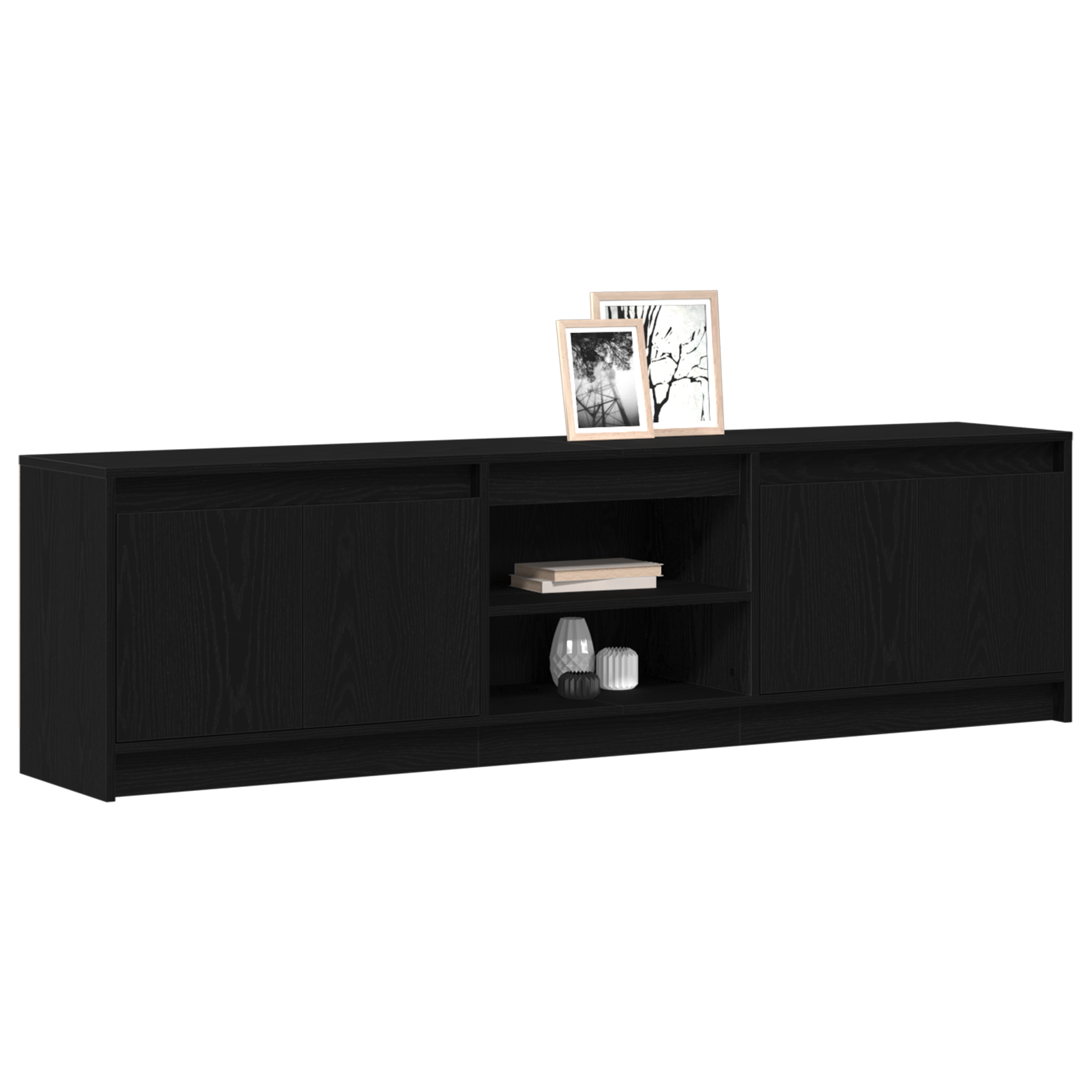 TV-Møbel Svart TV-skap med LED -stripelys med lagring med dør 182 x 34 x 50 cm