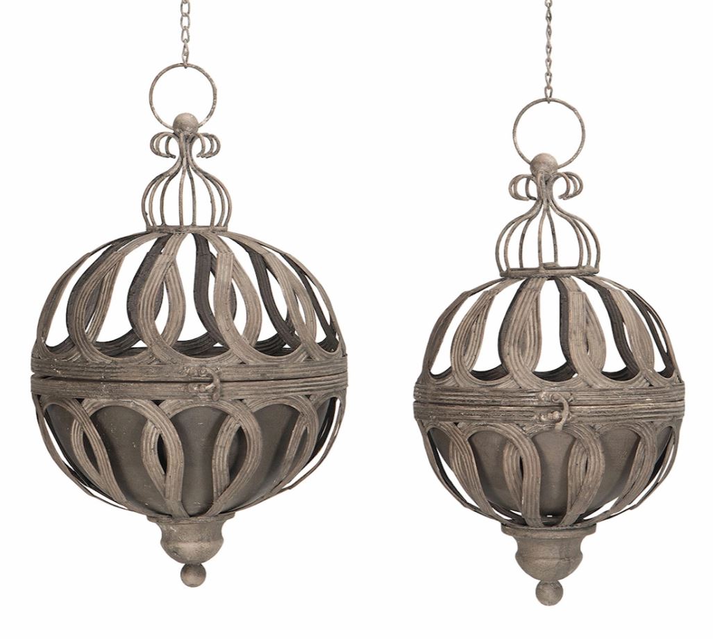Dette settet med hengende kuler blir en vakker måte å innrede med planter og grønt på. Laget i metall.